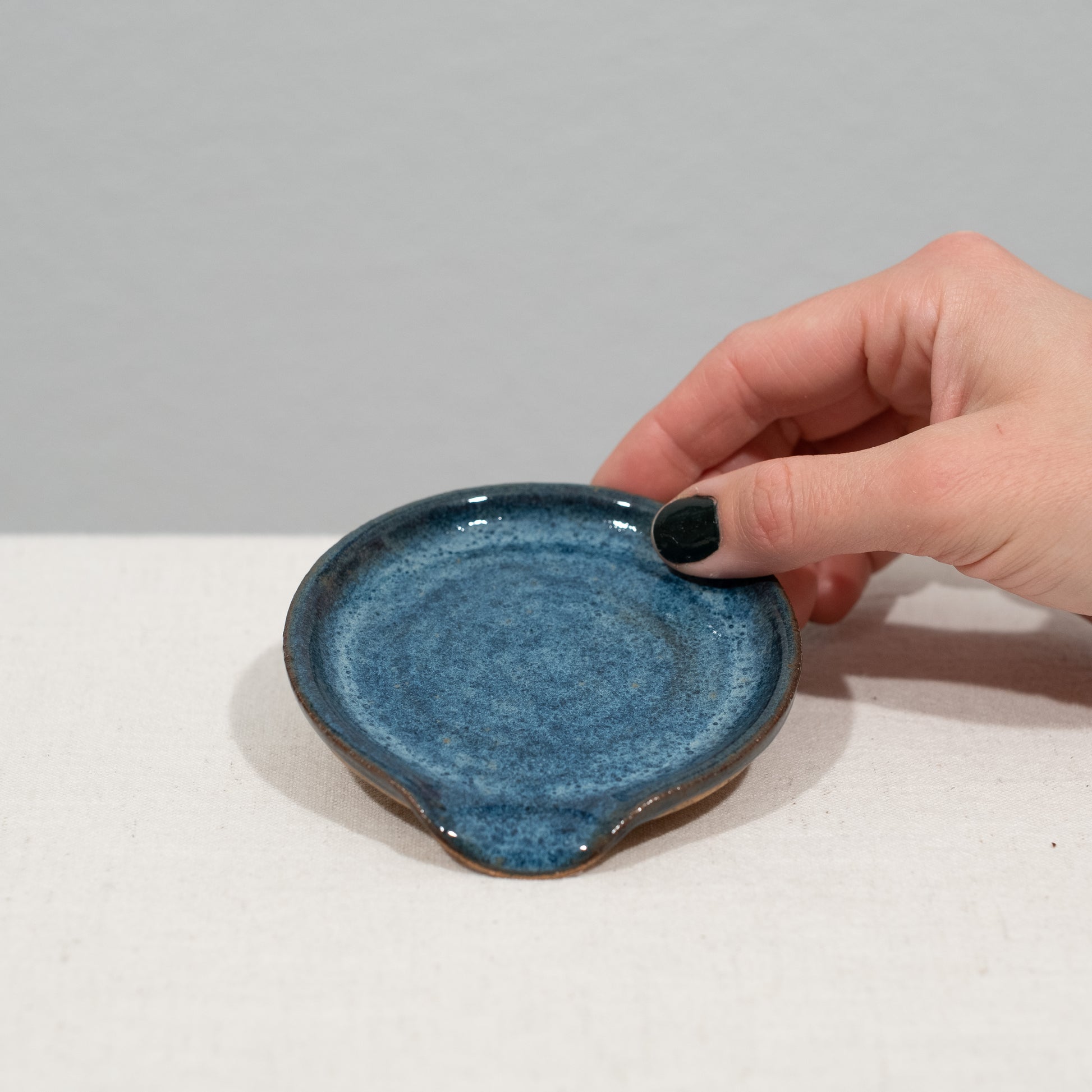 These spoon rests were thrown on the pottery wheel, the 'rest' was created by hand and fired in the kiln at 2170°F.