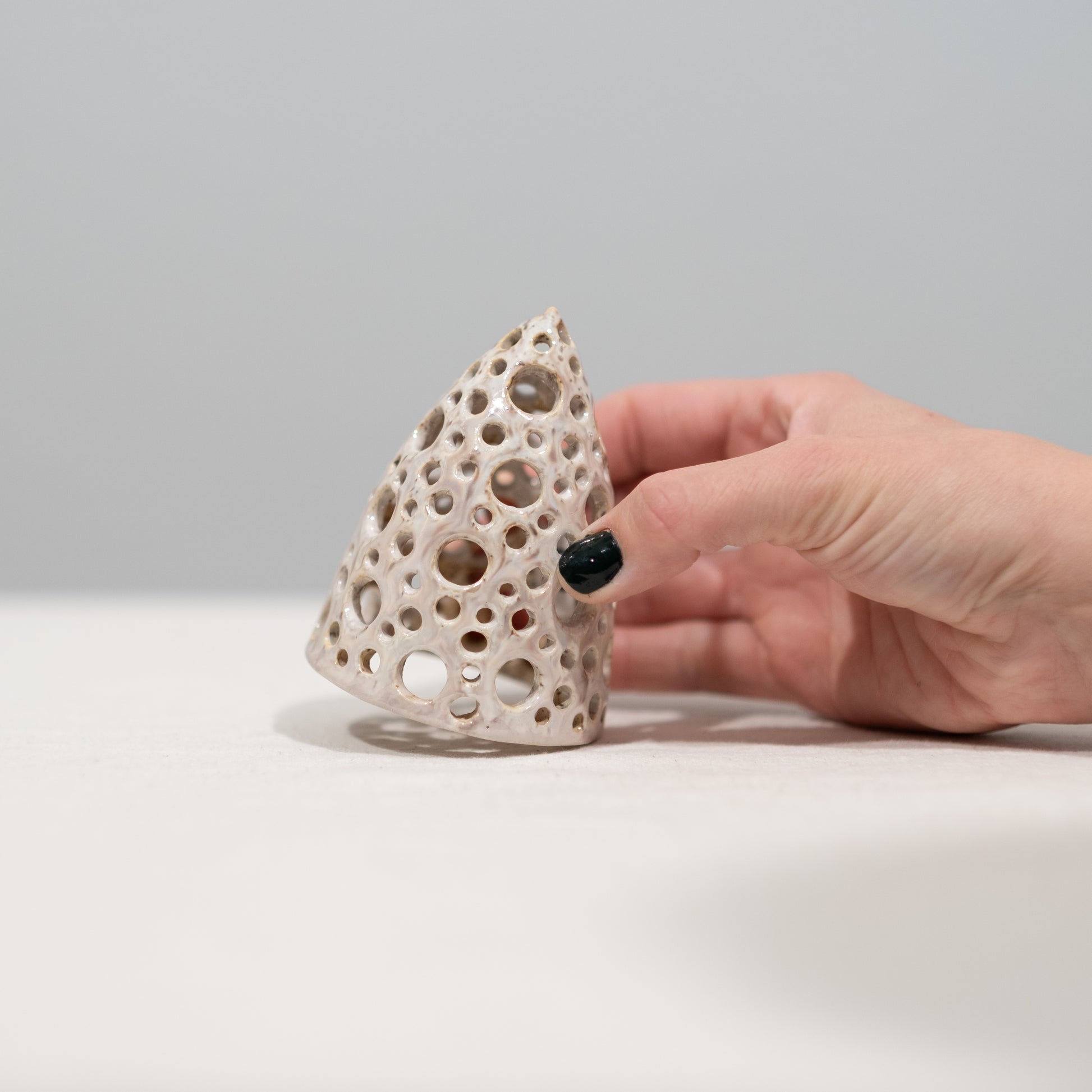 This luminary was thrown on the pottery wheel, the design was carefully created by hand, and then fired in the kiln at 2170°F.
